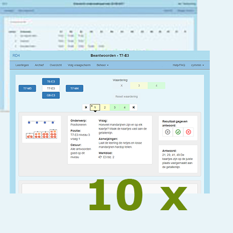 RD4 is bedoeld voor het analyseren van de rekenontwikkeling en rekenproblemen van kinderen in de basisschoolleeftijd. Het programma maakt de rekenontwikkeling van de leerling visueel inzichtelijk. De kleuren in het profiel geven aan wat de leerling al beheerst en op welk handelingsniveau. Dat biedt aanknopingspunten voor remediëring.
